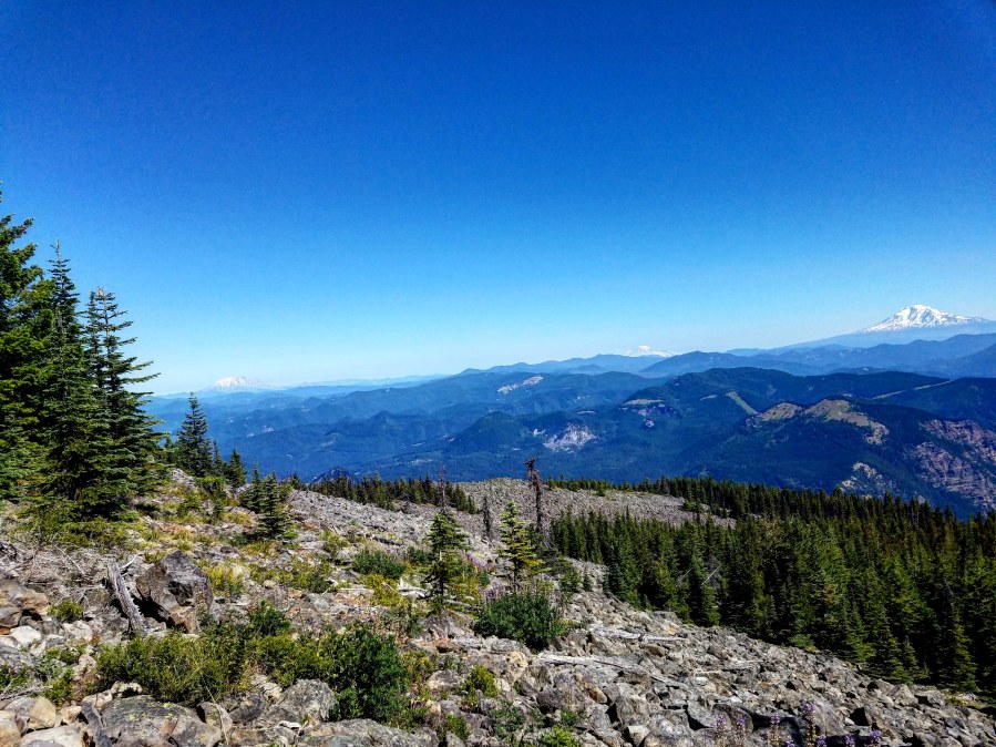 From left to right – Mount St. Helens, Mount Rainier, Mount Adams…